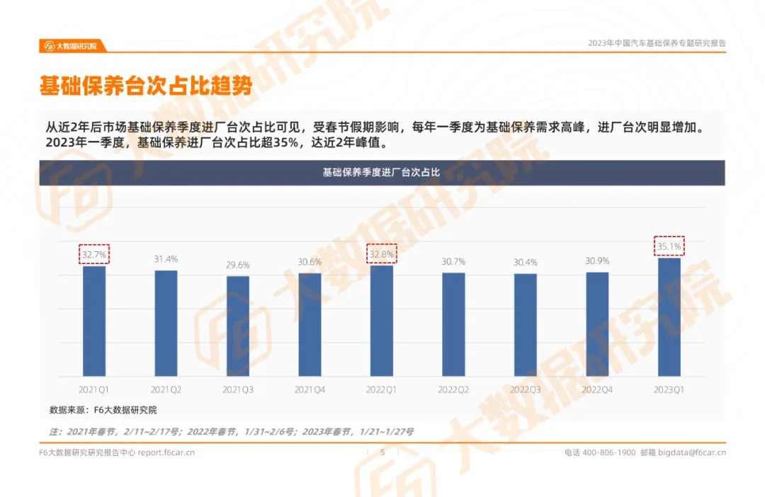 ▍From the proportion of basic maintenance visits in the market in the past two years, it can be seen that due to the influence of the Spring Festival holiday, the demand for basic maintenance is at its peak in the first quarter of each year, and the number of visits to the factory has significantly increased. In the first quarter of 2023, the proportion of basic maintenance visits to the factory exceeded 35%, reaching a peak in nearly two years.