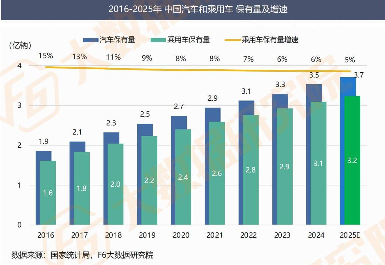 The number of automobiles in China has climbed to 350 million by 2024, and is expected to exceed 370 million by the end of 2025, with passenger cars expected to reach 320 million.