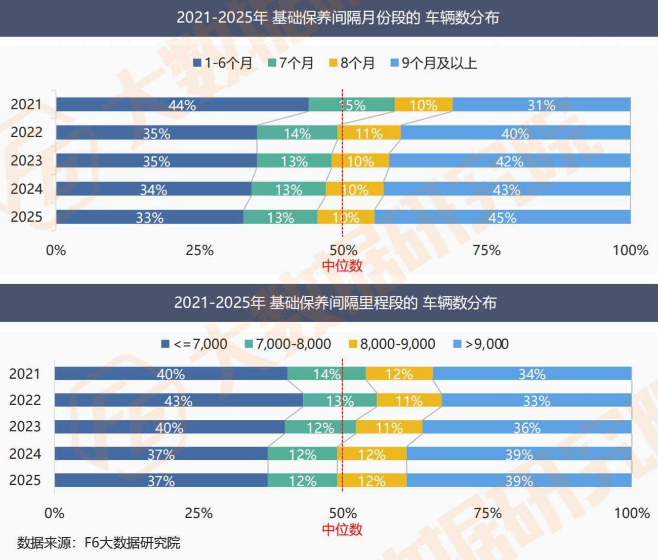 In 2025, the interval between basic maintenance for car owners will continue to shift backward: the proportion of car owners who only enter the factory for maintenance after an interval of 9 months or more will reach 45%, an increase of 2 percentage points from 2024; The median interval between months is currently stable at around 8 months, but still showing a backward trend.